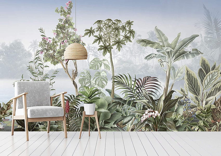a wide selection of tropical style wall decorations, from wallpapers to tropical paintings with an immersion in the jungle.