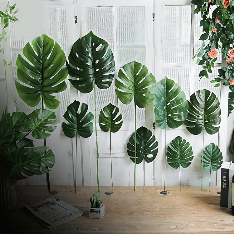 Artificial Monstera Leaves (With Stem)