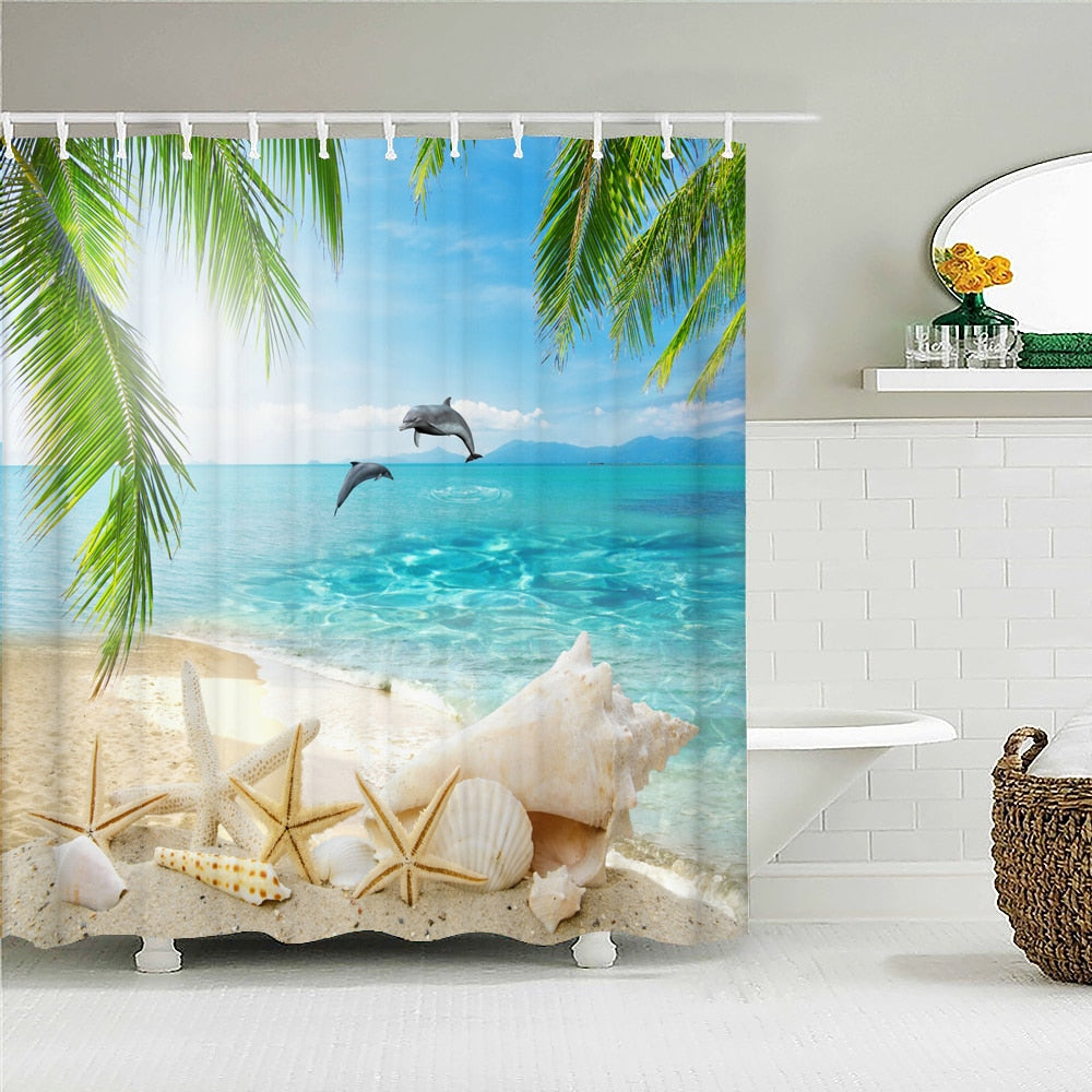 Palm Leaf And Seashell Shower Curtains